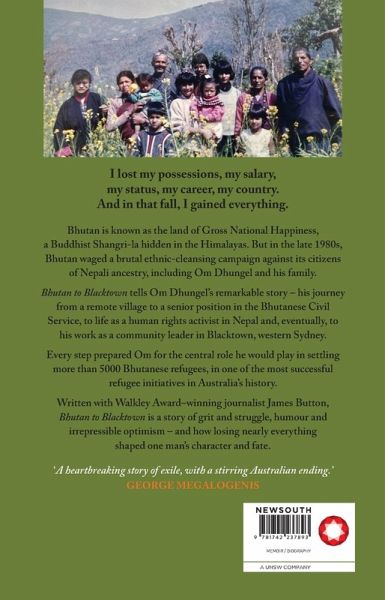 I lost my possessions, my salary, my status, my career, my country. And in that fall, I gained everything. Bhutan is known as the land of Gross National Happiness, a Buddhist Shangri-la hidden in the Himalayas. But in the late 1980s, Bhutan waged a brutal ethnic-cleansing campaign against its citizens of Nepali ancestry, including Om Dhungel and his family. Bhutan to Blacktown tells Om Dhungel's remarkable story - his journey from a remote village to a senior position in the Bhutanese Civil Service, to life as a human rights activist in Nepal and, eventually, to his work as a community leader in Blacktown, western Sydney. Every step prepared Om for the central role he would play in settling more than 5000 Bhutanese refugees, in one of the most successful refugee initiatives in Australia's history. Written with Walkley Award-winning journalist James Button, Bhutan to Blacktown is a story of grit and struggle, humour and irrepressible optimism - and how losing nearly everything shaped one man's character and fate. 'What you hold in your hands is a great Australian story.' - Foreword by Prime Minister Anthony Albanese 'A heartbreaking story of exile, with a stirring Australian ending.' - George Megalogenis 'Om Dhungel's journey of the heart and soul, from the fields of southern Bhutan to the streets of Blacktown, Sydney, is a journey from which we can all learn, regardless of our origins.' - Michael Hutt, Professor of Nepali and Himalayan Studies, School of Oriental and African Studies, University of London 'Om's optimism and tenacity helped him travel the harrowing path of a stateless person to build a new life for himself and his community. By telling his inspirational story and shedding light on the resettlement experience of Bhutanese refugees in Australia, Om brings the issue of refugees and the conditions for their successful integration in their new countries to a wider audience.' - Bhim Subba, author of Himalayan waters and former Director General of the Department of Power in the Government of Bhutan