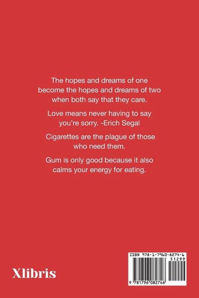 The hopes and dreams of one become the hopes and dreams of two when both say that they care. Love means never having to say you're sorry.-Erich Segal Cigarettes are the plague of those who need them. Gum is only good because it also calms your energy for eating.