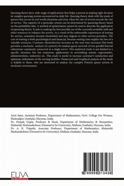 Queuing theory have wide range of applications that helps a person in making right decision in complex queuing system encountered in daily life. Queuing theory deals with the study of queues that occurs in real world situations and arise when the rate of arrival exceeds the rate of service. The capacity of a particular system can be determined by queueing theory based on the probability idea. A method of optimization cannot be used to describe the application of queueing theory. It aids in making the best possible use of the currently available staff and other resources to enhance the service. As a result of the unfavorable experiences of waiting for service, customers become dissatisfied and may migrate to other service providers. The cost of waiting is both psychological and financial, because waiting time implies the loss of a valuable resources. Customer dissatisfaction increases as the wait time increases.This book provides a stochastic analysis of a priority bi-tandem queue network of two parallel biserial subsystems commonly connected to a single server. This analytical study is not limited to a specific situation, but has numerous applications in networking system, supermarket, administrations, industries etc. This study is useful to increase customer's satisfaction and optimum utilizations of the serving facilities. Numerical and Graphical analysis of the study is helpful to those, who are interested to analyze the complex Priority queue system in stochastic environment.