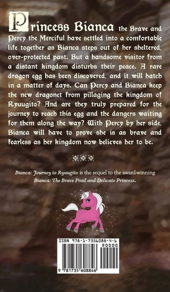Princess Bianca the Brave and Percy the Merciful have settled into a comfortable life together as Bianca steps out of her sheltered, over-protected past. But a handsome visitor from a distant kingdom disturbs their peace. A rare dragon egg has been discovered, and it will hatch in a matter of days. Can Percy and Bianca keep the new dragonet from pillaging the kingdom of Ryuugito? And are they truly prepared for the journey to reach this egg and the dangers waiting for them along the way? With Percy by her side, Bianca will have to prove she is as brave and fearless as her kingdom now believes her to be. This book is the sequel to Bianca: The Brave Frail and Delicate Princess.