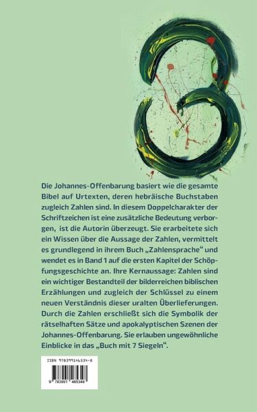 Die Johannes-Offenbarung basiert wie die gesamte Bibel auf Urtexten, deren hebräische Buchstaben zugleich Zahlen sind. In diesem Doppelcharakter der Schriftzeichen ist eine zusätzliche Bedeutung verborgen, ist die Autorin überzeugt. Sie erarbeitete sich ein Wissen über die Aussage der Zahlen, vermittelt es grundlegend in ihrem Buch "Zahlensprache" und wendet es in Band 1 auf die ersten Kapitel der Schöpfungsgeschichte an. Ihre Kernaussage: Zahlen sind ein wichtiger Bestandteil der bilderreichen biblischen Erzählungen und zugleich der Schlüssel zu einem neuen Verständnis dieser uralten Überlieferungen. Durch die Zahlen erschließt sich die Symbolik der rätselhaften Sätze und apokalyptischen Szenen der Johannes-Offenbarung. Sie erlauben ungewöhnliche Einblicke in das "Buch mit 7 Siegeln".