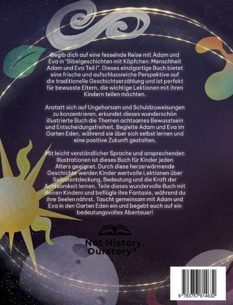 Bewusste Elternschaft ist der Schlüssel zum Aufbau einer besseren Zukunft. Indem wir unsere Kinder lehren, achtsam und bewusst mit ihrer inneren und äußeren Welt umzugehen, können wir ihnen helfen, zu mitfühlenden und verantwortungsbewussten jungen Erwachsenen heranzuwachsen. Dies können wir erreichen, indem wir ihnen Geschichten vorstellen, die ihre Neugier wecken, wie zum Beispiel die Geschichte von Adam und Eva - sowohl in der Originalversion als auch in den Bibelgeschichten mit Köpfchen.Durch das Erzählen von Geschichten können Kinder eine umfassendere Perspektive auf ihre Emotionen gewinnen und lernen, bewusste Entscheidungen zu treffen, die Frieden und Verständnis fördern. In Adam und Eva werden sie in den Garten Eden eingeladen, um dort die Wahrheit über uns und unserer Natur zu erfahren. Wir müssen sie ermutigen, altersgerechte Aufgaben und Verantwortlichkeiten zu übernehmen, um ein Gefühl von Verantwortungsbewusstsein zu entwickeln. Als bewusste Eltern und Gemeinschaftsleiter liegt es in unserer Verantwortung, die angeborene Neugier unserer Kinder zu fördern und sie dazu zu ermutigen, Fragen über die Welt um sie herum zu stellen. Bibelgeschichten mit Köpfchen ist eine Buchreihe für alle Altersgruppen und bietet eine einzigartige Lernerfahrung sowohl für Kinder als auch für Erwachsene. Mit wunderschönen Illustrationen und leicht verständlicher Sprache fesselt dieses Buch die Fantasie und inspiriert die Seele.Tauchen Sie ein in den Garten mit Adam und Eva und begeben Sie sich auf eine Reise der Selbstentdeckung und Bedeutung, die ein Leben lang anhält.