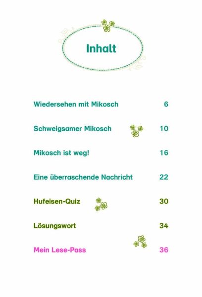 Optimal abgestimmt auf das erste Lesevermögen durch ein ausgewogenes Verhältnis von Textmenge und Illustration, angepasster Schriftart, Schriftgröße und ZeilenlängeMit Hufeisen-Quiz zur spielerischen Überprüfung des TextverständnissesDer Bibi-und-Tina-Lesepass spornt zu regelmäßigem Lesen an