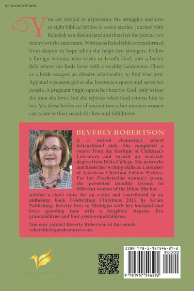You are invited to experience the struggles and joys of eight biblical brides in seven stories. Journey with Rebekah to a distant land and then feel the pain as two sisters love the same man. Witness as Rahab's life is transformed from despair to hope when she helps two strangers. Follow a foreign woman, who trusts in Israel's God, into a barley field where she finds favor with a wealthy landowner. Cheer as a bride escapes an abusive relationship to find true love. Applaud a peasant girl as she becomes a queen and saves her people. A pregnant virgin opens her heart to God, only to lose the man she loves, but she rejoices when God returns him to her. Yes, these brides are of ancient times, but modern women can relate to their search for love and fulfillment.