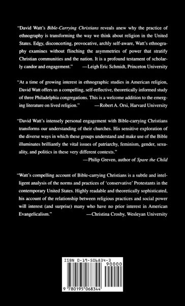 In the contemporary United States, there are hundreds of thousands of Protestant churches whose members habitually carry their Bibles with them. These churches - often referred to as evangelical or fundamentalist - play a crucial role in shaping American society. In this book, David Watt draws on years of fieldwork to present an elegant reinterpretation of the way that conservative Protestants influence American politics and culture. At the heart of the book is a sympathetic, but far from uncritical, analysis of those forms of social power that are assumed to be natural among Bible-carrying Christians. While outsiders often presuppose that evangelical Christians take for granted the authority of certain institutions (among them the American state, corporations, ministers, men, and heterosexuals), Watt argues that the reality is far more complex. This is a concise and lively book that sheds new light on the way that Bible-carrying Christians influence the way that people in America think.