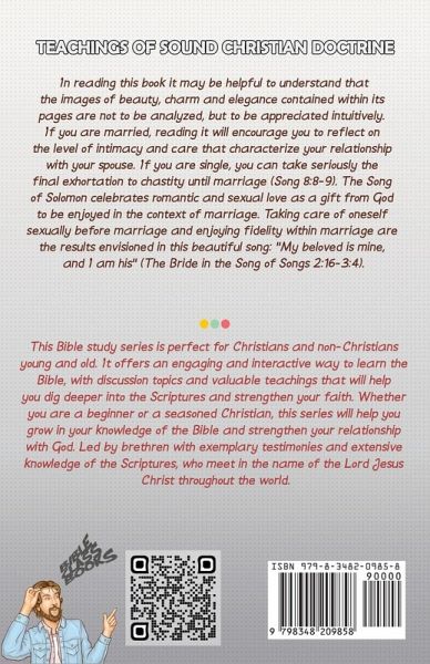 Sex in the Bible? Yes. For many it is a surprise to find a poem of love and sexual intimacy in the Bible. What should we do with this book? Some suggest that we read this book only from a symbolic and representative point of view of God's unconditional love for his people. Others think it is better to understand it as a manual for marriage and find in it a treasure trove of marital delights. Perhaps both approaches are valid. In any case, the Song of Songs is a magnificent illustration of physical love and its proper expression within the bonds of marriage as part of God's marvelous creation. In reading this book it may be helpful to understand that the images of beauty, charm and elegance contained within its pages are not to be analyzed, but to be appreciated intuitively. If you are married, reading it will encourage you to reflect on the level of intimacy and care that characterize your relationship with your spouse. If you are single, you can take seriously the final exhortation to chastity until marriage (Song 8:8-9). The Song of Solomon celebrates romantic and sexual love as a gift from God to be enjoyed in the context of marriage. Taking care of oneself sexually before marriage and enjoying fidelity within marriage are the results envisioned in this beautiful song: "My beloved is mine, and I am his" (The Bride in the Song of Songs 2:16-3:4). This Bible study series is perfect for Christians and non-Christians young and old. It offers an engaging and interactive way to learn the Bible, with discussion topics and valuable teachings that will help you dig deeper into the Scriptures and strengthen your faith. Whether you are a beginner or a seasoned Christian, this series will help you grow in your knowledge of the Bible and strengthen your relationship with God. Led by brethren with exemplary testimonies and extensive knowledge of the Scriptures, who meet in the name of the Lord Jesus Christ throughout the world.
