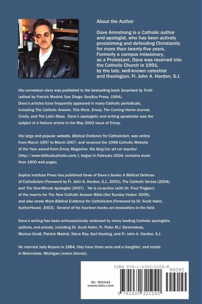 Fifteen dialogues loosely based on encounters of a Catholic apologist with Protestants, over the course of nearly five years of Internet discussions on lists, bulletin boards, and private correspondence. The most important and fundamental issues that divide Protestants and Catholics are dealt with: the relationship of Bible and tradition, the authority of the Church, whether the Church and tradition can be infallible like the Bible, how one is saved, the relationship of faith and works, whether Catholics believe in "salvation by works," grace alone, etc.