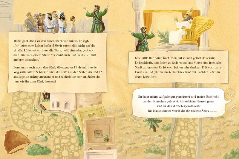 Vorwissen zur Bibel braucht man dafür nicht. Um der Lösung näherzukommen, reicht es, genau aufzupassen, denn die Botschaften und Hinweise sind gut versteckt. Man spielt, bastelt, schneidet, faltet und schreibt sich kreuz und quer durch Geschehnisse des Alten und Neuen Testaments. Ob allein oder zu mehreren, ein kurzweiliges Bibel-Abenteuer ist garantiert!