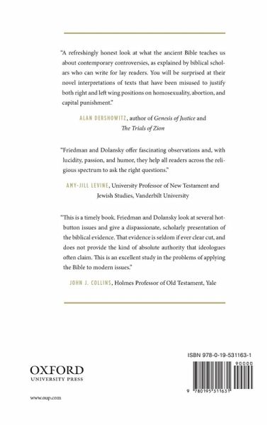 For millennia, people have used the Bible as a touchstone on important social and political questions, and rightly so. But many use the Bible simply as a weapon to wield against opponents in a variety of debates--without knowing what the Bible actually says about the issue in question. In The Bible Now, two respected biblical scholars, Richard Elliott Friedman and Shawna Dolansky, tell us carefully what the Hebrew Bible says or does not say about a wide range of issues--including homosexuality, abortion, women's status, capital punishment, and the environment. In fascinating passages that shed…mehr