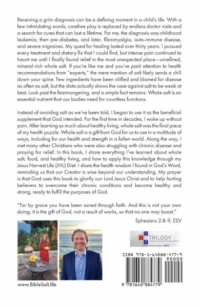 Receiving a grim diagnosis can be a defining moment in a child’s life. With a few intimidating words, carefree play is replaced by endless doctor visits and a search for cures that can last a lifetime. For me, the diagnosis was childhood leukemia, then pre-diabetes, and later, fibromyalgia, auto-immune disease, and severe migraines. My quest for healing lasted over thirty years. I pursued every treatment and dietary fix that I could find, but intense pain continued to haunt me until I finally found relief in the most unexpected place—unrefined, mineral-rich whole salt. If you’re like me and you’ve paid attention to health recommendations from "experts," the mere mention of salt likely sends a chill down your spine. Few ingredients have been vilified and blamed for disease as often as salt, but the data actually shows the case against salt to be weak at best. Look past the fearmongering, and a simple fact remains: Whole salt is an essential nutrient that our bodies need for countless functions. Instead of avoiding salt as we’ve been told, I began to use it as the beneficial supplement that God intended. For the first time in decades, I woke up without pain. After learning so much about healthy living, whole salt was the final piece of my health puzzle. Whole salt is a gift from God for us to use in a multitude of ways, including for our health and strength in a fallen world. Along the way, I met many other Christians who were also struggling with chronic disease and praying for relief. In this book, I share everything I’ve learned about whole salt, food, and healthy living, and how to apply this knowledge through my Jesus Harvest Life (JHL) Diet. I share the health wisdom I found in God’s Word, reminding us that our Creator is wise beyond our understanding. My prayer is that God uses this book to glorify our Lord Jesus Christ and to help hurting believers to overcome their chronic conditions and become healthy and strong, ready to fulfill the purposes of God. "For by grace you have been saved through faith. And this is not your own doing; it is the gift of God, not a result of works, so that no one may boast." Ephesians 2:8-9, ESV
