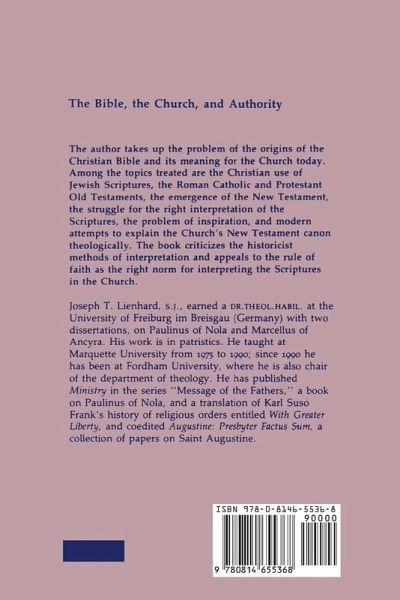 Since the early days of Christianity a tension has existed between the authority of the Bible and the authority of the Church. This has been further heightened by the question of Bible translation: How does the Word stand firm and yet continue to speak to a changing Church? Joseph Lienhard, a specialist in Early Christianity, examines the evolution of the Christian canon by casting this question against the life of the early Christians. Among the topics treated are the Christian use of Jewish Scriptures, the Catholic and Protestant Old Testaments, the emergence of the New Testament, the struggle for the right interpretation of the Scriptures, the problem of inspiration, and modern attempts to explain the Church's New Testament canon theologically. The book questions the use of historicist methods of interpretation and appeals to the Rule of Faith as the right norm for interpreting the Scriptures in the Church. Joseph T. Lienhard, SJ, earned his doctorate at the University of Freiburg im Breisgau (Germany) with two dissertations on Paulinus of Nola and Marcellus of Ancyra. His work is in patristics. He taught at Marquette University from 1975 to 1990, and since 1990 has been at Fordham University, where he is also chair of the department of theology. He has published Ministry in the Message of the Fathers of the Church series and other titles.