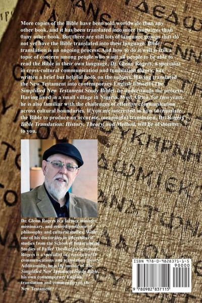 More copies of the Bible have been sold worldwide than any of book. It has been translated into more languages than any other book. But there are still lots of language groups that do not yet have the Bible translated into their language. Bible translation is an ongoing process. And how to do it well is still a topic of concern among people who want all people to be able to read the Bible in their own language. Dr. Glenn Rogers, a specialist in cross-cultural communication and translation theory, has written a brief but helpful book on the subject. Having translated the New Testament into contemporary English himself (The Simplified New Testament Study Bible), he understands the process. Having lived in a small village in Nigeria, West Africa, for two years, he is also familiar with the challenges of effective communication across cultural boundaries. If you are interested in how to translate the Bible to produce an accurate, meaningful translation, Dr. Rogers' Bible Translation: History, Theory, and Method, will be of interest to you.
