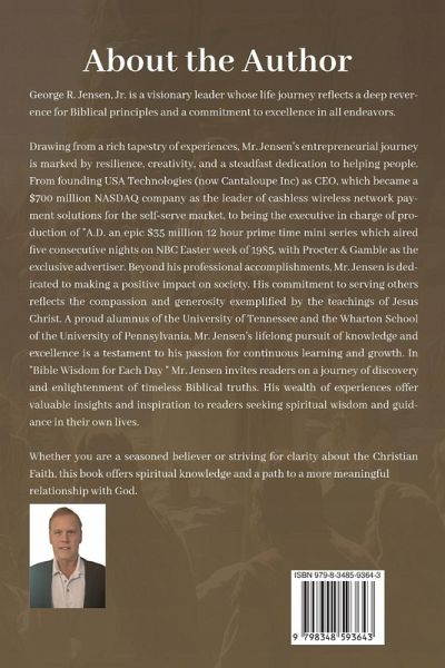 Bible Wisdom for Each Day - A 365-Day Journey Through Scripture Are you searching for daily inspiration, spiritual wisdom, and personal growth? Bible Wisdom for Each Day is a 365-day devotional that brings you closer to God through Scripture. With carefully selected Bible verses from the King James Version (KJV), this book will: 1. * Guide you through daily Bible study with meaningful reflections. * Offer 10 powerful insights for each verse, unlocking deeper understanding. * Inspire spiritual growth and a stronger faith. * Provide encouragement and clarity for navigating life's challenges. * Whether you are a new believer or have been walking in faith for years, this book will enrich your journey with timeless biblical wisdom. Start your daily devotional today! Click 'Buy Now' to begin your journey toward deeper faith and understanding!