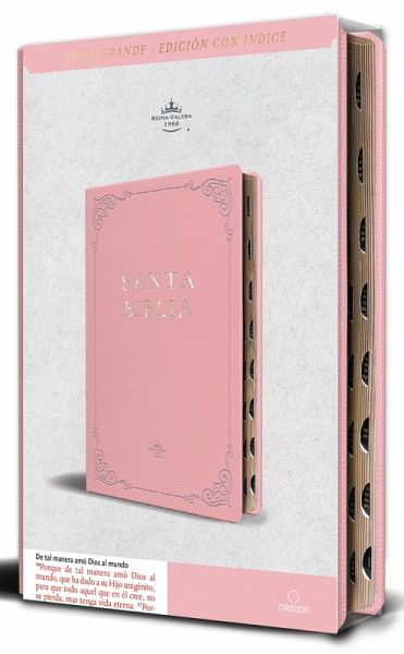 Biblia tamaño manual, ultrafina y con letra grande. Símil piel rosada con índice, cinta marcadora, y estudio conciso de los nombres de Dios Su presentación en símil piel rosada con índice hace que la Santa Biblia RVR 1960 sea ideal para el uso personal o para regalo. Esta edición de regalo trae un estudio especial sobre los nombres de Dios. Descubre el significado Bíblico de cada nombre de Dios tanto como su aplicación en nuestro andar diario. Con letra grande y las palabras de Cristo destacadas en rojo, la Biblia incluye una guía para ayudarte a leer toda la Biblia en un año. Esta edición conserva la belleza clásica y la elocuencia de la Reina Valera Revisada 1960. Liviana, práctica y resistente, su encuadernación la hace perfecta para acompañarte a todas partes, para la lectura diaria y el uso en la iglesia cada domingo. El texto incluye: • Letra grande que facilita la lectura (10.5 pts) • Concordancia • Palabras de Cristo en rojo • Encabezados visibles para encontrar fácilmente las referencias • Más de 10,000 referencias cruzadas • Plan de salvación • Un estudio conciso de los nombres de Dios • Una guía para leer la Biblia en un año Además, esta edición Reina Valera Revisada 1960 ofrece: • Encuadernación símil piel resistente y durable • Ultrafina • Página para dedicatoria • Cinta marcador • Con índice • Tamaño: 5 3/8 x 8 3/8 pulgadas (13.6 cm x 20.3 cm) • 1,280 páginas ENGLISH DESCRIPTION Handy size Bible, ultra-thin, with large print. Pink imitation leather with thumb index, placeholder ribbon, and a concise study of the names of God. Its presentation in pink imitation leather with an index makes the RVR 1960 Holy Bible ideal for personal use or as a gift. This gift edition includes a special study on the names of God. Discover the biblical meaning of each name of God as well as its application in our daily walk of life. In large print and the words of Christ highlighted in red, the Bible includes a guide to help you read through the entire Bible in one year. This elegant edition preserves the classic beauty and eloquence of the 1960 Revised Reina Valera version. Lightweight, practical, and durable, its binding makes it perfect to take with you everywhere, for daily reading, and for use in church every Sunday. The text includes: • Large print for easy reading (10.5 pts) • Print matching • Words of Christ in red • Visible headings to easily find references • More than 10,000 cross references • Plan of salvation • Personal and concise study of the names of God • A yearly guide to read the holy text In addition, this 1960 Revised Reina Valera edition offers: • Durable imitation leather binding • Ultra-thin • Dedication page • Placeholder ribbon • Index • Size: 5 3/8 x 8 3/8 inches (13.6 cm x 20.3 cm) • 1,280 pages