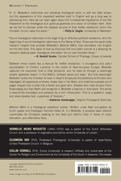 Biblical ABCs is a theological resistance primer. Written illegally under Nazi occupation by Dutch pastor and theologian Kornelis Heiko (K.H.) Miskotte, it provides basic biblical coordinates for Christians seeking to live bold and faithful lives in times of crisis, alienation, and alternative facts.