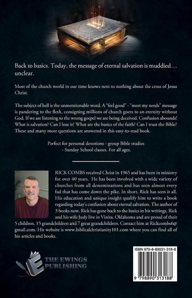 Back to basics. Today, the message of eternal salvation is muddied... unclear. Most of the church world in our time knows next to nothing about the cross of Jesus Christ. The subject of hell is the unmentionable word. A "feel good" - "meet my needs" message is pandering to the flesh, consigning millions of church goers to an eternity without God. If we are listening to the wrong gospel we are being deceived. Confusion abounds! What is salvation? Can I lose it? What are the basics of the faith? Can I trust the Bible? These and many more questions are answered in this easy-to-read book. Perfect for personal devotions - group Bible studies - Sunday School classes. For all ages.