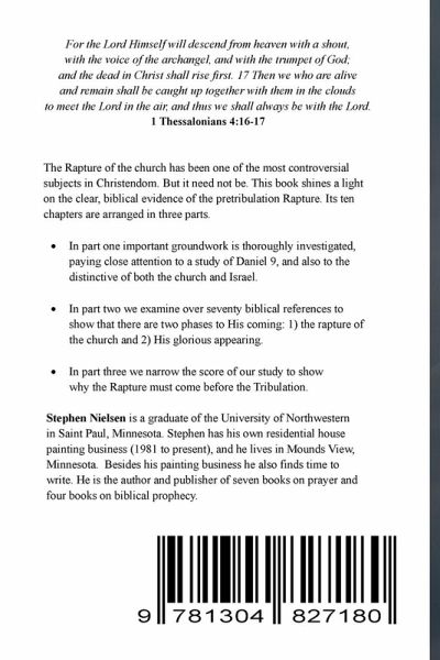 The Rapture of the church has been one of the most controversial subjects of Christendom. In fact, the entire area of biblical prophecy seems to be a touchy subject for most churches. This study, in three parts, thoroughly investigates the subject of the Rapture of the church, and presents clear, biblical evidence that it comes before the Tribulation. This evidence is God's design to bring us comfort and encouragement in these last days.