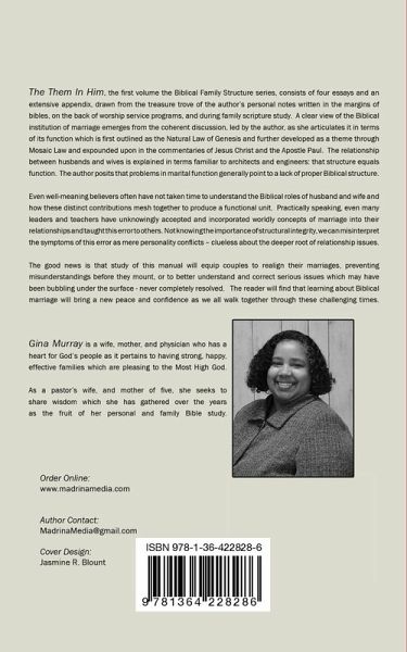 The Them In Him, the first volume the Biblical Family Structure series, consists of four essays and an extensive appendix, drawn from the treasure trove of the author s personal notes written in the margins of Bibles, on the back of worship service programs, and during family scripture study. A clear view of the Biblical institution of marriage emerges from the coherent discussion, led by the author, as she articulates it in terms of its function which is first outlined as the Natural Law of Genesis and further developed as a theme through Mosaic Law and expounded upon in the commentaries of Jesus Christ and the Apostle Paul. The relationship between husbands and wives is explained in terms familiar to architects and engineers: that structure equals function. The author posits that problems in marital function generally point to a lack of proper Biblical structure. Even well-meaning believers often have not taken time to understand the Biblical roles of husband and wife and how these distinct contributions mesh together to produce a functional unit. Practically speaking, even many leaders and teachers have unknowingly accepted and incorporated worldly concepts of marriage into their relationships and taught this error to others. Not knowing the importance of structural integrity, we can misinterpret the symptoms of this error as mere personality conflicts clueless about the deeper root of relationship issues. The good news is that study of this manual will equip couples to realign their marriages, preventing misunderstandings before they mount, or to better understand and correct serious issues which may have been bubbling under the surface - never completely resolved. The reader will find that learning about Biblical marriage will bring a new peace and confidence as we all walk together through these challenging times.