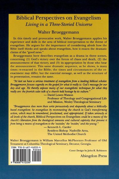 In this timely and provocative work, Walter Brueggemann applies his experience and skills in the area of biblical interpretation to the theme of evangelism. He argues for the importance of considering afresh how the Bible itself thinks and speaks about evangelism, how it enacts the dramatic claims of the "good news." Brueggemann here describes evangelism as a drama in three scenes, concerning (1) God's victory over the forces of chaos and death, (2) the announcement of that victory, and (3) its appropriation by those who hear the announcement. This same dramatic sequence, as he shows, is many time re-enacted in the Bible; the times and circumstances of the re-enactment may differ, but the essential message, as well as the structure of its presentation, remains the same.