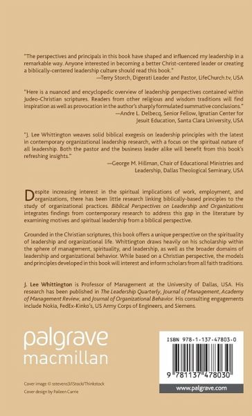 "Many typical Christian leadership books out today just throw in a couple of Bible verses on top of secular business principles and call it blessed. What Lee Whittington accomplishes is to weave solid biblical exegesis on leadership principles with the latest in contemporary organizational leadership research, with a focus on the spiritual nature of all leadership. Both the pastor and the business leader alike will benefit from this book's refreshing insights." -Dr. George M. Hillman, Chair of Educational Ministries and Leadership at Dallas Theological Seminary,USA