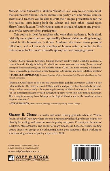 Biblical Poems Embedded in Biblical Narratives is an easy-to-use course book that synthesizes Sharon Chace's interests in poetry, art, and biblical studies. Pastors and teachers will be able to craft their unique presentations for the first session--introducing both the subject and each other--based upon Sharon's introduction. The following sessions include reflections and practices to evoke responses from participants. This course is ideal for teachers who want their students to both think critically and explore their own spirituality. Chace's bridge-building theology, rooted in the humanities, is timely. Academic discourse, warm personal reflections, and a keen understanding of human nature combine in this instructional tool to create a broadly appropriate and engaging course.