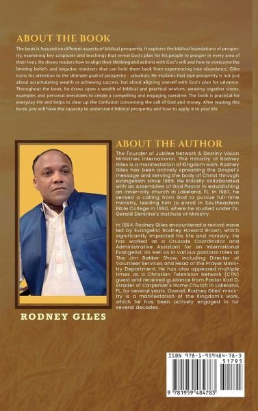Biblical Prosperity: Follow the Will of God for ultimate Salvation is a powerful guide to understanding and living out the principles of prosperity as taught in the Bible. Author Rodney Giles draws upon his years of experience as a pastor to help readers unlock the secrets to true wealth and abundance in every area of life. The book is focused on different aspects of biblical prosperity. Giles explores the biblical foundations of prosperity, examining key scriptures and teachings that reveal God's plan for his people to prosper in every area of their lives. He shows readers how to align their thinking and actions with God's will, and how to overcome the limiting beliefs and negative mindsets that can hold them back from experiencing true abundance. Giles turns his attention to the ultimate goal of prosperity: salvation. He argues that true prosperity is not just about accumulating wealth or achieving success, but about aligning oneself with God's plan for redemption and salvation. He offers a clear and compelling vision of what it means to be truly prosperous in the eyes of God, and shows readers how to live out this vision in their daily lives. Throughout the book, Giles draws upon a wealth of biblical and practical wisdom, weaving together stories, examples, and personal anecdotes to create a compelling and engaging narrative. He challenges readers to think deeply about their own beliefs and attitudes, and offers practical guidance on how to transform these beliefs into actions that will lead to true prosperity and success. Biblical Prosperity: Follow the Will of God for ultimate Salvation is a must-read. It offers a powerful and transformative message of hope, encouragement, and practical guidance for anyone seeking to live a life of true prosperity and abundance in Christ