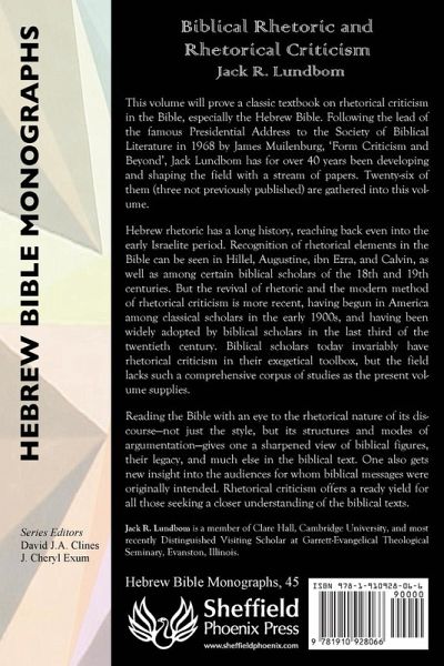 This volume will prove a classic textbook on rhetorical criticism in the Bible, especially the Hebrew Bible. Following the lead of the famous Presidential Address to the Society of Biblical Literature in 1968 by James Muilenburg, 'Form Criticism and Beyond', Jack Lundbom has for over 40 years been developing and shaping the field with a stream of papers. Twenty-six of them (three not previously published) are gathered into this volume. Hebrew rhetoric has a long history, reaching back even into the early Israelite period. Recognition of rhetorical elements in the Bible can be seen in Hillel, Augustine, ibn Ezra, and Calvin, as well as among certain biblical scholars of the 18th and 19th centuries. But the revival of rhetoric and the modern method of rhetorical criticism is more recent, having begun in America among classical scholars in the early 1900s, and having been widely adopted by biblical scholars in the last third of the twentieth century. Biblical scholars today invariably have rhetorical criticism in their exegetical toolbox, but the field lacks such a comprehensive corpus of studies as the present volume supplies. Reading the Bible with an eye to the rhetorical nature of its discourse-not just the style, but its structures and modes of argumentation-gives one a sharpened view of biblical figures, their legacy, and much else in the biblical text. One also gets new insight into the audiences for whom biblical messages were originally intended. Rhetorical criticism offers a ready yield for all those seeking a closer understanding of the biblical texts.