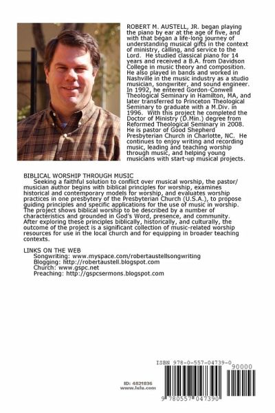 Presbyterian pastor, musician, and worship leader, Robert Austell, integrates biblical theology, historical study, review of contemporary writers Marva Dawn, Robert Webber, and John Frame, and local field study to offer an integrated and biblical approach to musical worship planning and execution. He also offers nearly 100 pages of planning and other musical resources in a lengthy appendix.