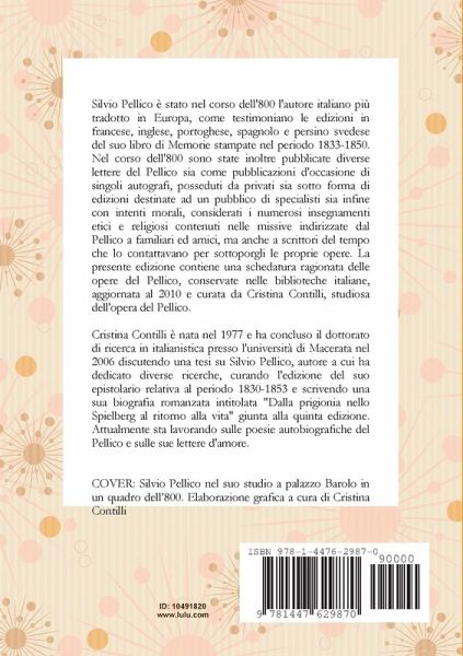 Silvio Pellico è stato nel corso dell'800 l'autore italiano più tradotto in Europa, come testimoniano le edizioni in francese, inglese, portoghese, spagnolo e persino svedese del suo libro di Memorie stampate nel periodo 1833-1850. Nel corso dell'800 sono state inoltre pubblicate diverse lettere del Pellico sia come pubblicazioni d'occasione di singoli autografi, posseduti da privati sia sotto forma di edizioni destinate ad un pubblico di specialisti sia infine con intenti morali, considerati i numerosi insegnamenti etici e religiosi contenuti nelle missive indirizzate dal Pellico a familiari ed amici, ma anche a scrittori del tempo che lo contattavano per sottoporgli le proprie opere. La presente edizione contiene una schedatura ragionata delle opere del Pellico, conservate nelle biblioteche italiane, aggiornata al 2011 e curata da Cristina Contilli, studiosa dell'opera del Pellico e autrice dell'edizione critica del suo epistolario.