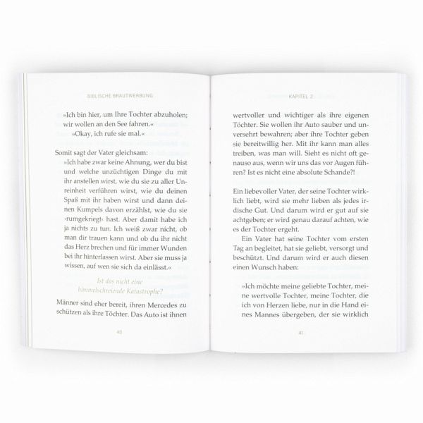 In einer Zeit, in der Dating und unverbindliche Beziehungen auch für Christen schon normal geworden sind und die Autorität des Vaters geringgeschätzt wird, gibt Peter Schild vor allem jungen Männern, aber auch Vätern und Pastoren biblische Prinzipien an die Hand - Prinzipien, die keineswegs einengend sind, sondern Freude und Freiheit bieten. Er legt dar, dass biblische Brautwerbung göttlichen Schutz und väterliche Weisheit benötigt, und erklärt praxisnah, wie der junge Mann in respektvoller Weise um eine Frau werben kann.