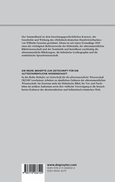 Im Jahre 2010 jährte sich das Erscheinen des "Hebräisch-deutschen Handwörterbuches" von Wilhelm Gesenius (1786-1842) zum 200. Male. Es gibt kaum wissenschaftliche Werke, die einen so intensiven und nachhaltigen Einfluß auf die alttestamentliche Bibelexegese, die hebräische Lexikographie und die semitistische Sprachwissenschaft ausgeübt haben wie dieses Wörterbuch. Nach Gesenius' Tod zeichneten seit der 5. Auflage 1857 neue und wechselnde Bearbeiter für die Neuausgaben verantwortlich, und so ist das seit 1810 in bisher 18 Auflagen erschienene Gesenius-Wörterbuch nicht nur eine Quelle, sondern ein Spiegel bedeutender Entwicklungen in den beteiligten Fächern. Die insgesamt 33 Beiträge des Sammelbandes gehen diesen verschiedenen Aspekten aus alttestamentlicher, hebraistischer, aramaistischer, judaistischer, semitistischer und forschungsgeschichtlicher Sicht nach.