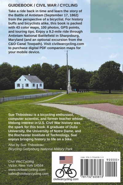 Sue Thibodeau is a bicycling enthusiast, computer scientist, and former teacher. "Like a kid on a bike," she explores U.S. national military parks as a way to learn Civil War history. A graduate of Duke University, the University of Notre Dame, and the Rochester Institute of Technology, Sue publishes educational touring materials through Civil War Cycling. She is the author of Bicycling Gettysburg National Military Park (2019), Bicycling Antietam National Battlefield (2020), Bicycling Chickamauga Battlefield (2021), and Bicycling Shiloh National Military Park (forthcoming).