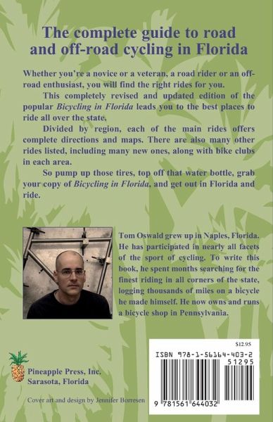 This newly updated guide to the best cycling in Florida is jam-packed with information. Ride up to the highest point in Florida (345 feet), along the Suwannee River, through central Florida's horse farms, and out to Key Biscayne along the Rickenbacker Causeway. This book includes complete directions, maps, and important information for over 70 such rides, so you can be well-informed and safe on your journeys. In addition to detailed information on each ride, this book also gives important information on cycling laws and safety issues, and tells you where to stop to see the best scenery. Also given are the names and addresses of area bike associations.