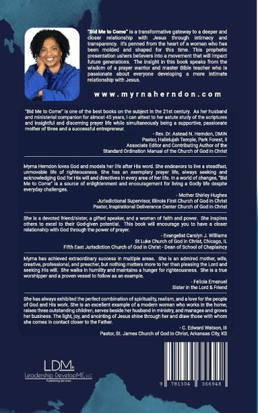 "Bid Me to Come" is a transformative gateway to a deeper and closer relationship with Jesus through intimacy and transparency. It's penned from the heart of a woman who has been molded and shaped for this time. This prophetic presentation ushers believers into a movement that will impact future generations. The insight in this book speaks from the wisdom of a prayer warrior and master Bible teacher who is passionate about everyone developing a more intimate relationship with Jesus.