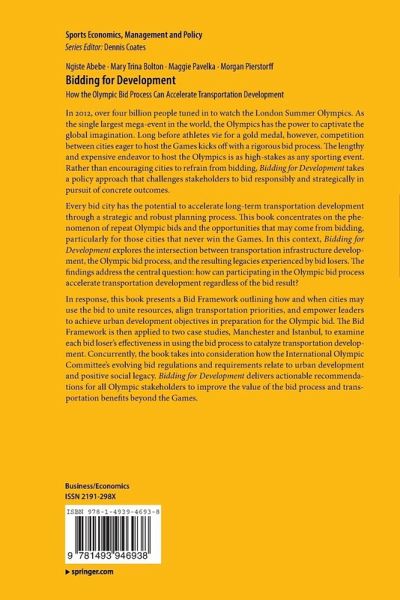Every bid city has the potential to accelerate long-term transportation development through a strategic and robust planning process. This book concentrates on the phenomenon of repeat Olympic bids and the opportunities that may come from bidding, particularly for those cities that never win the Games. In this context, Bidding for Development explores the intersection between transportation infrastructure development, the Olympic bid process, and the resulting legacies experienced by bid losers. The findings address the central question: how can participating in the Olympic bid process accelerate transportation development regardless of the bid result?