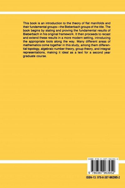 Many mathematics books suffer from schizophrenia, and this is yet another. On the one hand it tries to be a reference for the basic results on flat riemannian manifolds. On the other hand it attempts to be a textbook which can be used for a second year graduate course. My aim was to keep the second personality dominant, but the reference persona kept breaking out especially at the end of sections in the form of remarks that contain more advanced material. To satisfy this reference persona, I'll begin by telling you a little about the subject matter of the book, and then I'll talk about the textbook aspect. A flat riemannian manifold is a space in which you can talk about geometry (e. g. distance, angle, curvature, "straight lines," etc. ) and, in addition, the geometry is locally the one we all know and love, namely euclidean geometry. This means that near any point of this space one can introduce coordinates so that with respect to these coordinates, the rules of euclidean geometry hold. These coordinates are not valid in the entire space, so you can't conclude the space is euclidean space itself. In this book we are mainly concerned with compact flat riemannian manifolds, and unless we say otherwise, we use the term "flat manifold" to mean "compact flat riemannian manifold. " It turns out that the most important invariant for flat manifolds is the fundamental group.