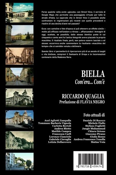 Il volume ripercorre almeno due secoli di vita e storia biellese - Oropa compresa - attraverso il confronto tra le immagini preservate da quasi ducento cartoline d'epoca, messe a confronto con scatti fotografici realizzati dallo stesso punto ai giorni nostri. Commento di Riccardo Quaglia. Introduzione di Flavia Negro.