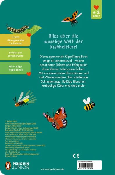 Hier gibt es richtig viel zu entdecken! Dieses Buch mit 13 Klipp-Klapp-Seiten zeigt eindrucksvoll, welche besonderen Talente und Fähigkeiten alle Arten von Krabbeltieren haben. Mit wunderschönen Illustrationen und viel Wissenswertem über schillernde Schmetterlinge, fleißige Bienchen, krabbelige Käfer und viele mehr.
