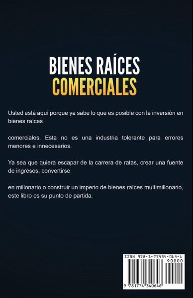 Usted está aquí porque ya sabe lo que es posible con la inversión en bienes raíces comerciales. Esta no es una industria tolerante para errores menores e innecesarios. Ya sea que quiera escapar de la carrera de ratas, crear una fuente de ingresos, convertirse en millonario o construir un imperio de bienes raíces multimillonario, este libro es su punto de partida.