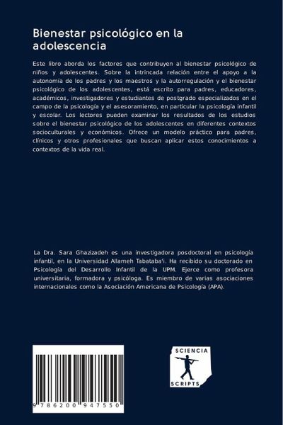 Este libro aborda los factores que contribuyen al bienestar psicológico de niños y adolescentes. Sobre la intrincada relación entre el apoyo a la autonomía de los padres y los maestros y la autorregulación y el bienestar psicológico de los adolescentes, está escrito para padres, educadores, académicos, investigadores y estudiantes de postgrado especializados en el campo de la psicología y el asesoramiento, en particular la psicología infantil y escolar. Los lectores pueden examinar los resultados de los estudios sobre el bienestar psicológico de los adolescentes en diferentes contextos socioculturales y económicos. Ofrece un modelo práctico para padres, clínicos y otros profesionales que buscan aplicar estos conocimientos a contextos de la vida real.