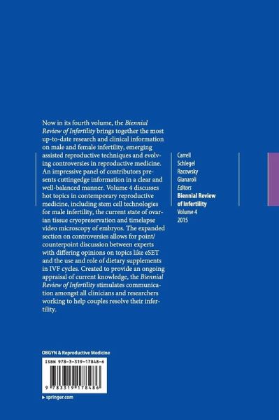 Part I: Male.- The Epidemiology of Male Infertility.- Vasectomy Reversal or IVF: Analysis of Factors for Success.- Stem Cell Therapies for Male Infertility: Where Are We Now and Where Are We Going?.- Part II: Female.- Insights Into Mechanisms Causing the Maternal Age-induced Decrease in Oocyte Quality.-Endometriosis and Cancer: Is There an Association?.- Ovarian Tissue Cryopreservation: Where Are We Now?.- Part III: Art.- Animal Models for Developing Clinical Lab Procedures.- Current Status of Time-lapse Microscopy for Embryo Selection.- The Ideal Spermatozoon for ART.- Is Acupuncture Associated with Improved IVF Outcomes?.- Dr. Web and the New Generation of ART Patients.- Part IV: Controversies.- Yes, Elective Single Embryo Transfer Should Be Standard of Care.- Klinefelter Syndrome: Early Treatment of the Adolescent is Warranted.- Klinefelter Syndrome: Early Treatment of the Adolescent is Not Warranted.- Are Dietary Supplements Beneficial for IVF Patients?.