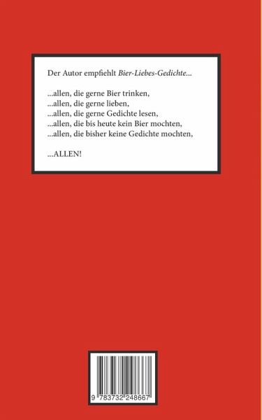 Der Autor Alfred Reichel empfiehlt "Bier-Liebes-Gedichte" allen, die gerne Bier trinken, allen, die gerne lieben, allen, die gerne Gedichte lesen, allen, die bis heute kein Bier mochten, allen, die bisher keine Gedichte mochten, ALLEN!