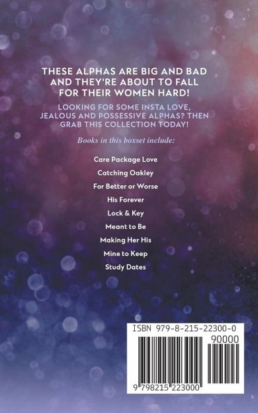 These alphas are big and bad and they're about to fall for their women HARD! Looking for some insta love, jealous and possessive alphas? Then grab this collection today! Books in this set include: Care Package Love Catching Oakley For Better or Worse His Forever Lock & Key Meant to Be Making Her His Mine to Keep Study Dates