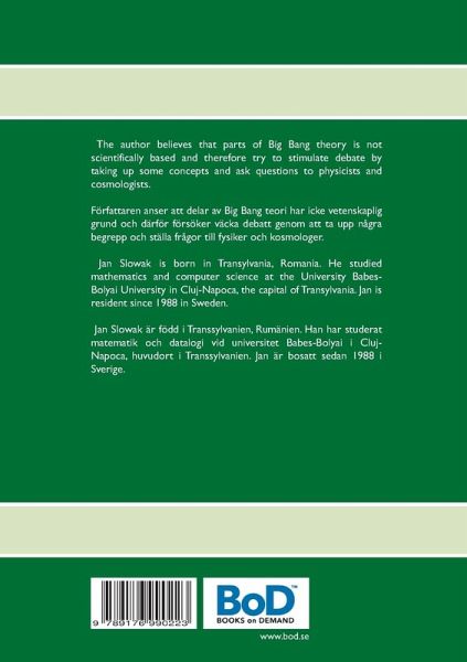 The author believes that parts of Big Bang theory is not scientifically based and therefore try to stimulate debate by taking up some concepts and ask questions to physicists and cosmologists.Författaren anser att delar av Big Bang teori har icke vetenskaplig grund och därför försöker väcka debatt genom att ta upp några begrepp och ställa frågor till fysiker och kosmologer.