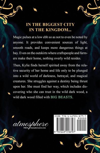 In the biggest city in the kingdom... Magic pulses at a low ebb so as not to even be noted by anyone. It provides convenient sources of light, smooth roads, and keeps more dangerous things at bay. Even on the outskirts where craftspeople and farmers make their home, nothing overly wild resides. ¿¿¿Then, Kylie finds herself spirited away from the relative security of her home and life only to be plunged into a wild world of darkness, betrayal, and magical creatures. She struggles against a destiny being thrust upon her. She must find her way, which includes discovering who she can trust in the wild dark wood, a wild dark wood filled with Big Beasts.