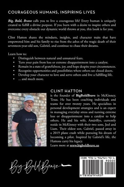 COURAGEOUS HUMANS, INSPIRING LIVES Big, Bold, Brave calls you to live a courageous life! Every human is uniquely created to fulfill a divine purpose. If you burn with a desire to inspire others and overcome every obstacle our dynamic world throws at you, this book is for you. Clint Hatton shares the mindsets, insights, and character traits that have empowered him and his family to rise from the ashes of the tragic death of their seventeen-year-old son, Gabriel, and continue to chase their dreams. Learn how to: ¿ Distinguish between natural and unnatural fears. ¿ Turn your pain from loss or extreme disappointment into a catalyst. ¿ Remain in a state of gratefulness, joy, and hope despite your circumstances. ¿ Recognize opportunities and possibilities where others see closed doors. ¿ Develop your character to love and serve others and live a fulfilling life. ¿ ... and much more.