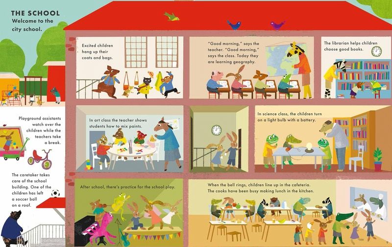 Learn many interesting facts about the structure and set-up of cities. What does a school look like? What can you find in a shopping center? These huge-format, 40-page books, illustrated by Britta Teckentrup, feature fun-filled busy places. Bursting with information, humor, and color, they teach children about how cities function.