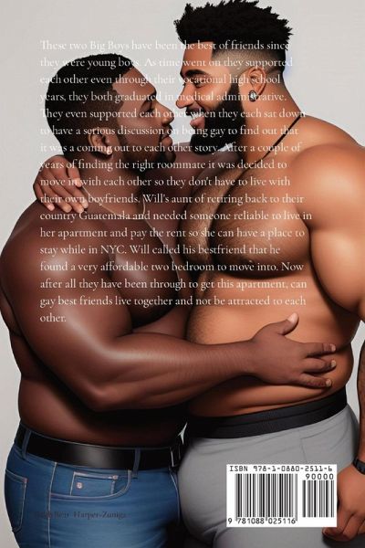 These two Big Boys have been the best of friends since they were young boys. As time went on they supported each other even through their vocational high school years, they both graduated in medical administrative. They even supported each other when they each sat down to have a serious discussion on being gay to find out that it was a coming out to each other story. After a couple of years of finding the right roommate it was decided to move in with each other so they don't have to live with their own boyfriends. Will's aunt of retiring back to their country Guatemala and needed someone reliable to live in her apartment and pay the rent so she can have a place to stay while in NYC. Will called his bestfriend that he found a very affordable two bedroom to move into. Now after all they have been through to get this apartment, can gay best friends live together and not be attracted to each other.
