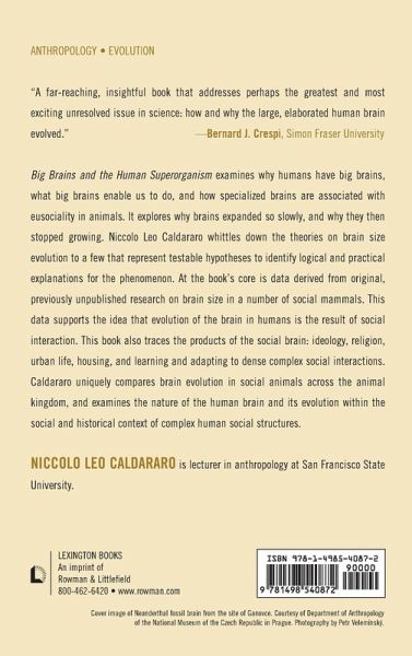 This book examines why humans have big brains and how brains are associated with complex society and behavior in other animals. It compares brain evolution in social animals and examines the evolution of the human brain in social and historical contexts.