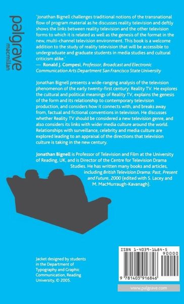 'Jonathan Bignell challenges traditional notions of the transnational flow of program material as he discusses reality television and deftly shows the links between reality television and the other television forms to which it is related as well as the genesis of the format in the new, multi-channel television environment. This book is a welcome addition to the study of reality television that will be accessible to undergraduate and graduate students in media studies and cultural criticism alike.' - Ronald J. Compesi, Professor, Broadcast and Electronic Communication Arts Department, San Francisco State University, USA